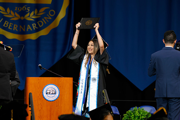 Commencement ceremonies at CSUSB are held twice a year: the Fall Commencement ceremony takes place in December and the Spring Commencement ceremony takes place in June. During commencement, we commemorate and congratulate our graduates on their achievements!