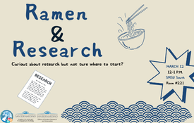 Join Ramen & Research: How to Find Your First Research Experience to learn how to explore research opportunities, connect with faculty mentors, and prepare for research internships or assistantships. Discover helpful campus resources, gain practical guidance, and enjoy instant ramen while planning your next academic step.