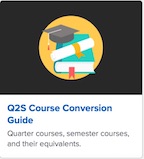 Below are the roadmaps for the quarter catalog, relevant to many students who entered CSUSB prior to fall 2020. To see course equivalents for semester, check your PAWs or the "Q2S Course Conversion Guide" on you mycoyote. It looks like this: