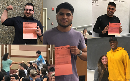 Happy students received invitations to compete in the CAST (Coyote Annual Speech Tournament) coming up May 24, delivered by members of the Forensics Team. The annual event is held at the Santos Manuel Student Union and is an opportunity for invited students from COMM 120 to compete and showcase the skills they have learned. Again this year, the event is sponsored by McGraw Hill Education and will feature some fantastic prizes thanks to their support!