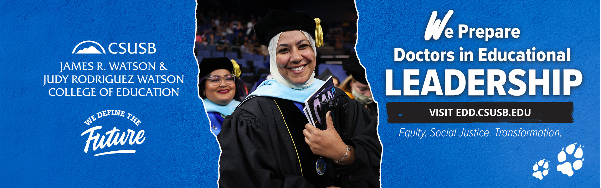 The Doctorate of Education (Ed.D.) in Educational Leadership is a program framed around questions of equity, ethics, and social justice to bring about solutions to complex problems of practice. The program is designed to prepare educational leaders with the knowledge base and skills to lead reform efforts that result in improved student outcomes and educational transformation, particularly for our Inland Empire region.