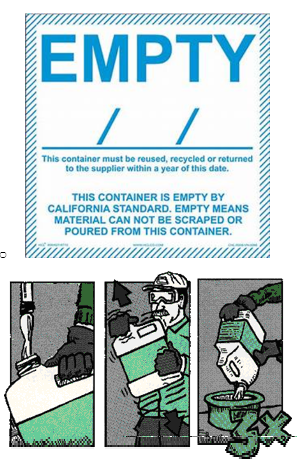 Containers are considered empty when no material can be poured or scraped from it. The container must be California empty before disposing of it as regular waste.