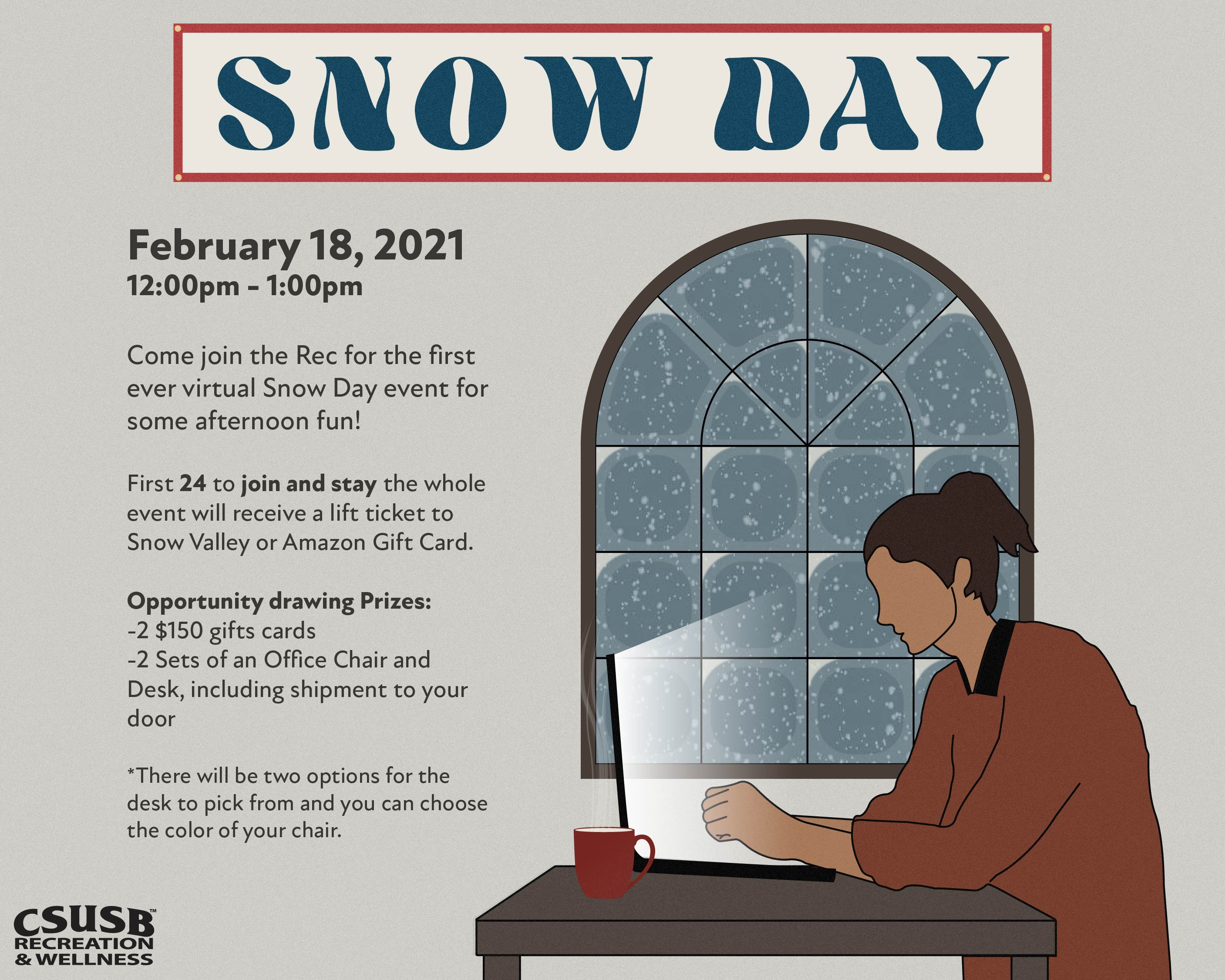 Come enjoy some fun activities with Rec Well and win some awesome prizes during our virtual snow day event.