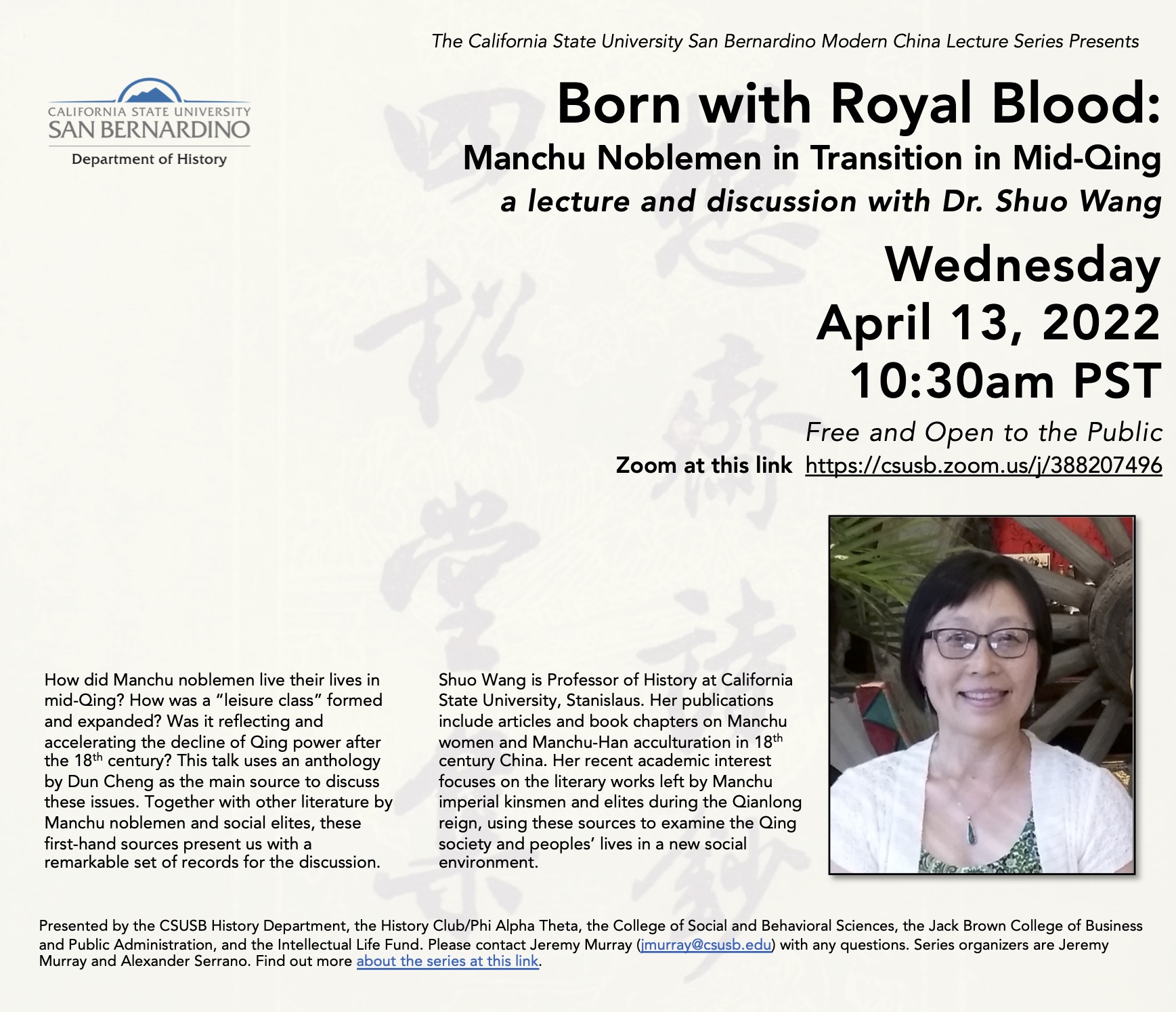 Born with Royal Blood: Manchu Noblemen in Transition in Mid-Qing, with Professor Shuo Wang (CSU Stanislaus)