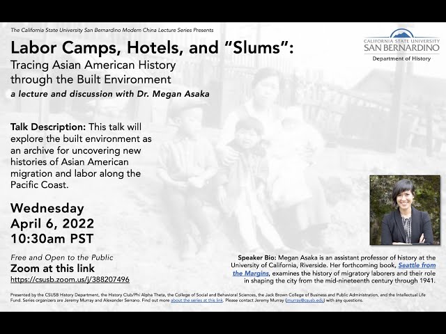 Labor Camps, Hotels, and "Slums": Tracing Asian American History through the Built Environment, a lecture and discussion with Dr. Megan Asaka