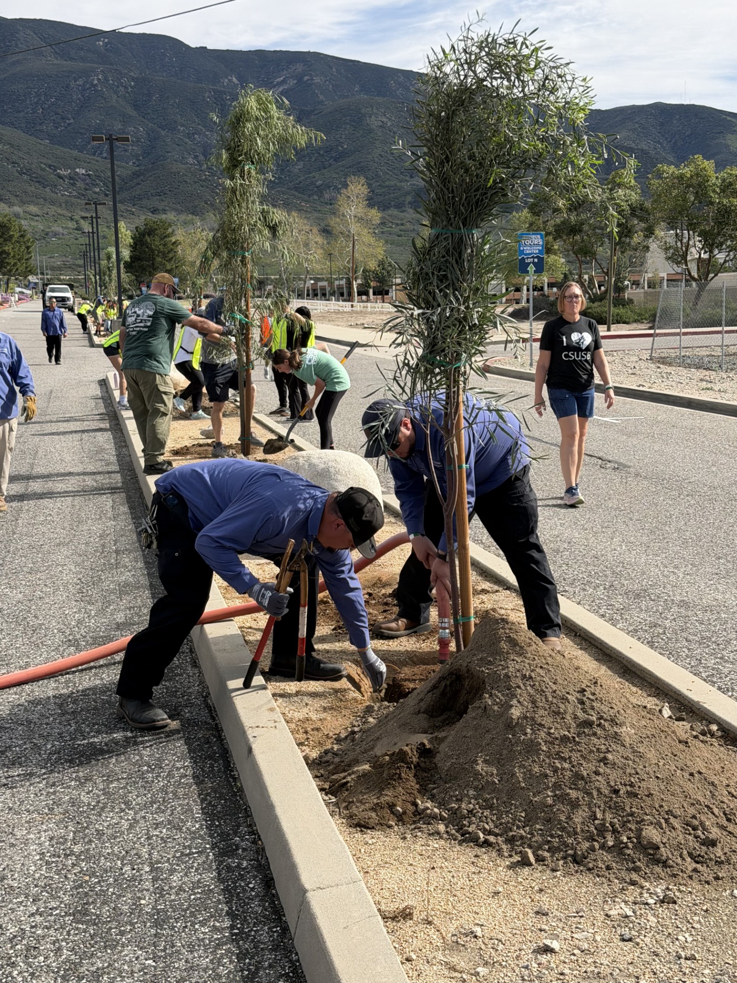The Office of Sustainability extends sincere thanks to the West Coast Arborist Team and their area manager, Mr. Alonso Garcia, for their expert guidance throughout the planting process. We also express our deep appreciation to the CSUSB grounds team — Daniel Salazar, Antonio Valdovinos, Bryan Fulmer, Mark Casillas, Julio Cruz, and Jose Urena, Raul Lerma— for their hard work, support, and ongoing commitment to maintaining and enhancing our campus landscape.