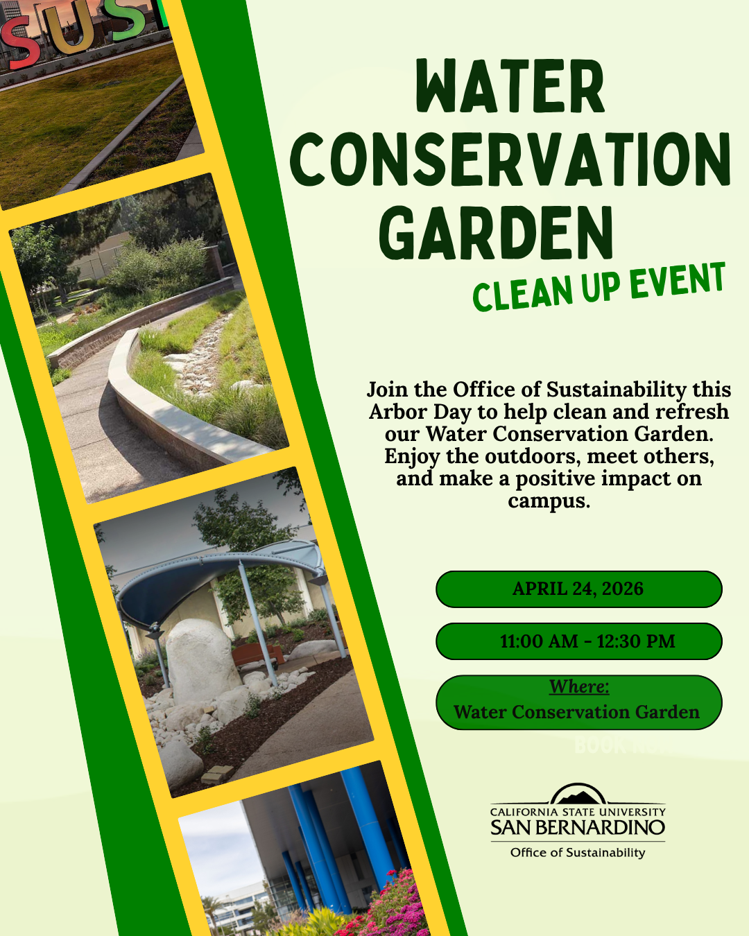 Join us on Friday, April 24 from 11:00 a.m. to 12:30 p.m. as we clean up the Water Conservation Garden in celebration of Arbor Day.