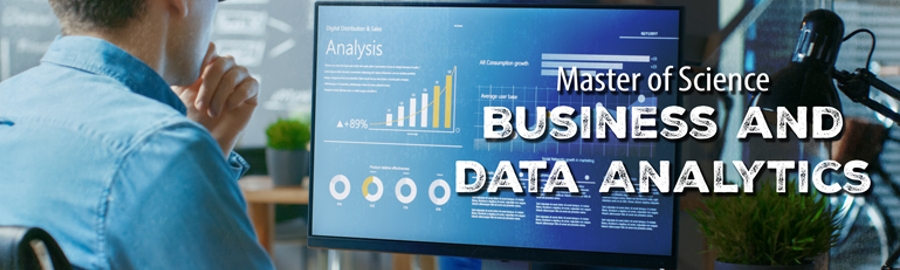 The Master of Science in Business and Data Analytics prepares students for important roles in business. Data analysts transform data into insights that enhance decision making is a key challenge for businesses of every size and in all industries. Job growth is expected at 25% in the decade ending 2029, putting Business and Data Analytics professionals in high demand.