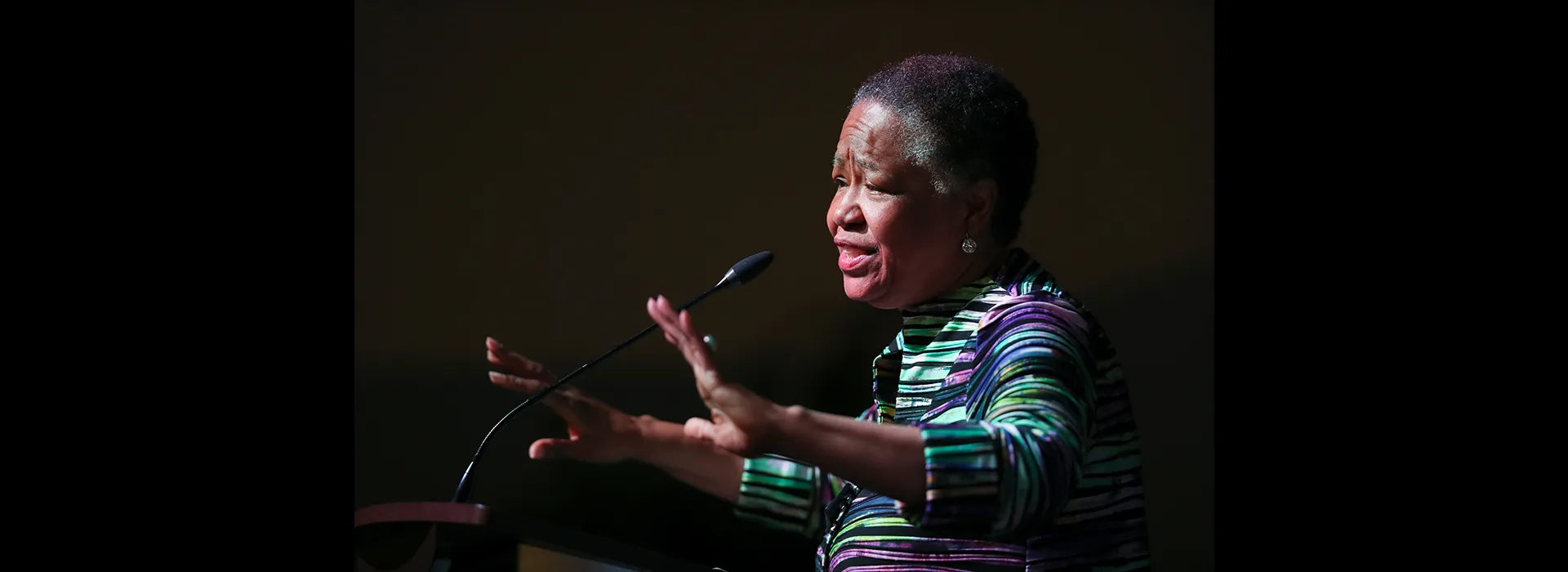 The April 13 symposium on race relations and social justice at Cal State San Bernardino offered panel presentations, breakout sessions and a keynote address by award-winning social change agent and former senior adviser and vice president of the W. K. Kellogg Foundation (WKKF), Gail C. Christopher. The event, “Dismantling Systems of Racism and Exclusion for a Better I.E.,” was hosted by CSUSB’s University Diversity Committee, in partnership with Westside Action Group. “We live in a time when racism and social justice are prominent in the daily news and in the minds of many across our country,” said CSUSB President Tomás D. Morales in his opening remarks. “Young and old, representing the spectrum of ethnic cultural and socioeconomic groups – we have to unite. We have to confront these issues on the national level and confront them on the regional level. “I value the fact that I’m a member of this community that has such a critical impact on this region,” he continued. “I just can’t be more proud of what we are instilling in our students.” Cesar Caballero, dean of the John M. Pfau Library and chair of the University Diversity Committee, acknowledged the important role colleges play when it comes to societal concerns. “Universities should contribute and be engaged with the community, and part of that engagement is beginning to help to solve some of the current issues,” he said. “That’s what we are doing today – addressing some of those issues.” In her speech, Christopher, the visionary for and architect of the WKKF-lead Truth Racial Healing and Transformation (TRHT) effort for America, focused on the false belief that some people are worth more than others. “My message this morning is summarized in three words: we deserve better,” she said. “This region, this nation, this critical time in the evolution of humanity can be summarized in the reality that we deserve better. “Yes, we’ve fought the good fight for many decades; we had a civil war in this country, we had the Civil Rights Movement, we had reconstruction,” she continued. “But how is that we always circle back to the manifestation of a hierarchy of human value? I submit to you that we circle back because we never dealt with it. “I believe that we must jettison the fundamental undergirding fallacy of a belief in a hierarchy of human value. And when that has happened, we will truly transform this country,” she said. Christopher explored the five frameworks of the TRHT – narrative change, racial healing and relationship building, separation, law and economy – and how these aim to help communities heal and produce actionable change. “It is a truth and reconciliation process for this country,” she said, explaining that 150 organizations came together and worked for seven months to do a collaborative co-design effort around the framework for the TRHT. Christopher also acknowledged the fact that biases are inherently within everyone, but highlighted the importance of dismantling them. “This notion of overcoming our biases, it’s not somebody else’s work – it’s all of our work,” she said.Discussions and breakout sessions followed Christopher’s speech, focusing on homelessness, food insecurity, mental health, the school-to-prison pipeline, drug addiction, and the need to develop future inland region leaders. Sponsors included Westside Action Group, No Kid Hungry Campaign, CSUSB’s President’s Office, University Diversity Committee, and the John M. Pfau Library. About Gail ChristopherChristopher is the visionary for and architect of the WKKF-led Truth Racial Healing and Transformation (TRHT) effort for America. TRHT is an adaptation of the globally recognized Truth and Reconciliation Commission model, having evolved from the decade-long WKKF America Healing initiative, designed and led by Christopher, which advances racial healing and racial equity.Over the last 10 years, Christopher was responsible for several other areas of foundation programming, including food, health and well-being, leadership, public policy, community engagement, and place-based funding in New Orleans and New Mexico. She is a highly sought-after speaker on racial healing, the human capacity for human caring, and the social determinants of health and wellness. Christopher holds a doctor of naprapathy degree from the Chicago National College of Naprapathy in Illinois and completed advanced study in the interdisciplinary Ph.D. program in holistic health and clinical nutrition at the Union for Experimenting Colleges and Universities at Union Graduate School of Cincinnati, Ohio.