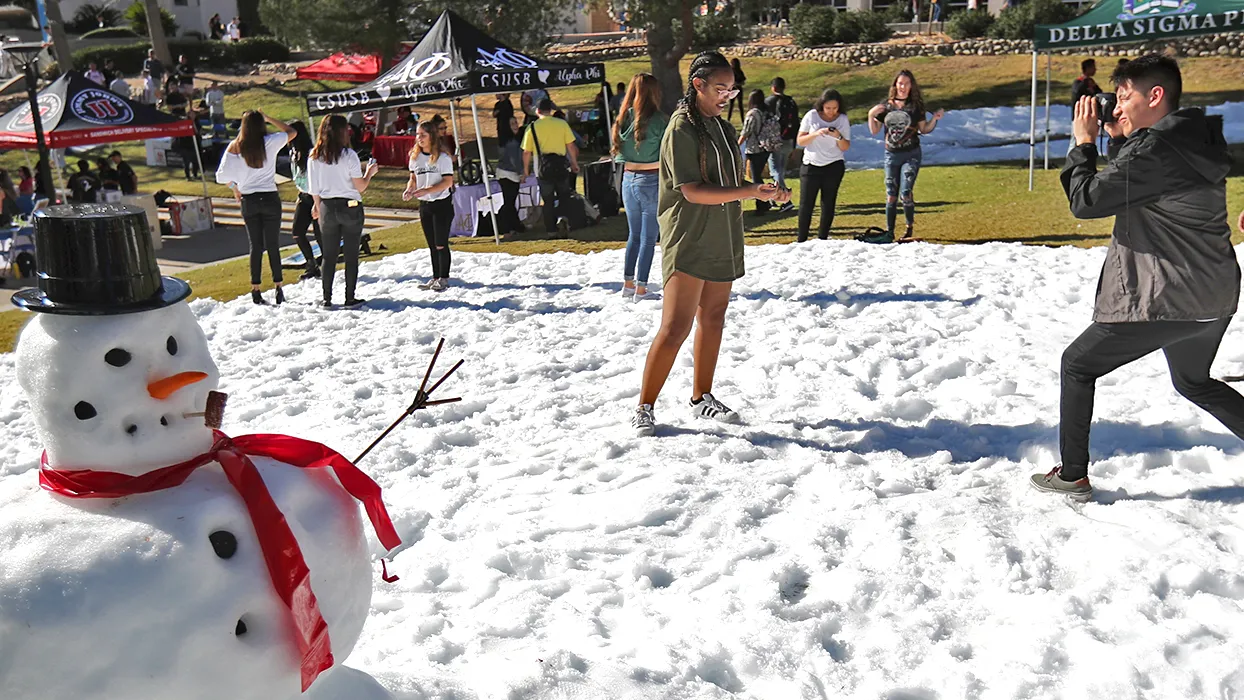 More than 1,000 Cal State San Bernardino students took refuge from warm, balmy weather by sledding, snowboarding and playing in makeshift wintery conditions for the 11th annual CSUSB Snow Day held on Jan. 18.