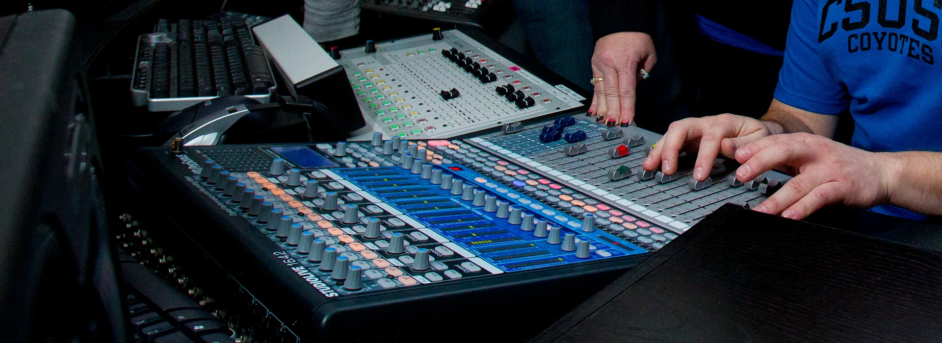 The collaboration of the two stations allows students on both campuses to play a part in the writing, digital recording, editing, producing, and promotion of program content. “This innovative programming development gives our students the opportunity to be creative and train using professional radio production standards and expectations,” said Alfredo Cruz, co-manager for Coyote Radio & Advertising.
