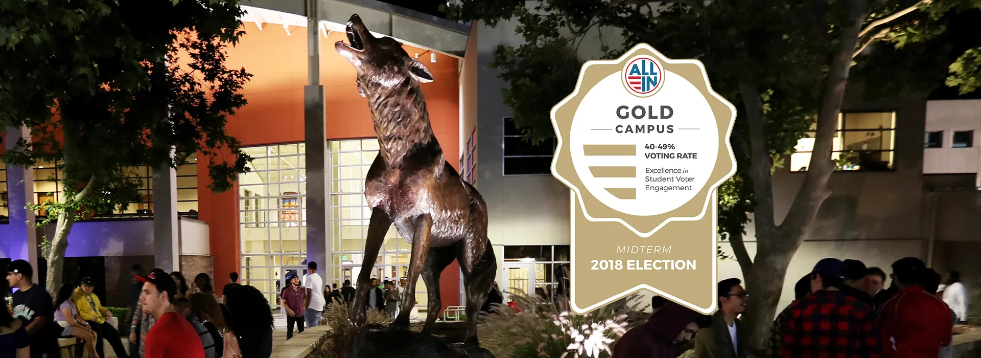 Last year CSUSB was recognized with a bronze seal at the first-ever ALL IN Challenge Awards Ceremony, held last October, to recognize colleges and universities committed to increasing college student voting rates.