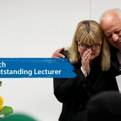 Donna Gotch was named the 2018-19 Outstanding Lecturer on May 23 when CSUSB President Tomás D. Morales and a group of faculty, staff and administrators stepped into her classroom to make the surprise announcement.