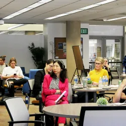 The College of Arts and Letters hosted its Faculty Colloquium on Nov. 4, and featured Tom McGovern (art; chair of World Languages & Literatures), Gretchen Bergquist (communication studies), and Jasmine Lee (English).