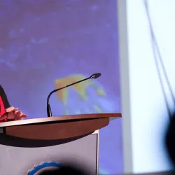 Charlene Teters took the audience on an audio and visual journey when she discussed her experiences as a child, student, parent, artist and activist protesting the use of Native Americans as sports mascots.