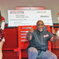 CSUSB alumnus Dennis Johnson, now a teacher at Fallbrook High School, was honored with a 2019 Harbor Freight Tools for Schools Prize for Teaching Excellence.