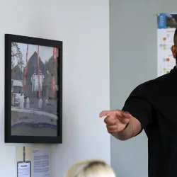 The CSUSB College of Arts and Letters Faculty Colloquium featured three faculty members: Carmen Jany, professor of Spanish; Annie Buckley, professor of art; and Nicholas Bratcher, assistant professor of music.