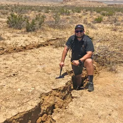 Bryan Castillo (MS, Earth and Environmental Sciences, ’19) was among several geologists, students, researchers, and others who traveled from near and far to investigate the damage wrought by the July 4 and 5 quakes near Ridgecrest.
