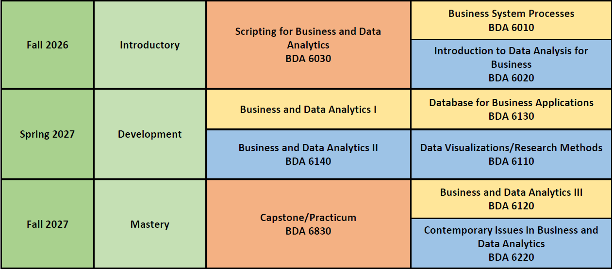 The program is cohort based and enrolls a new student cohort every Fall semester. Courses run in 15-week or 7-week sessions. The program can be completed in 18 months.