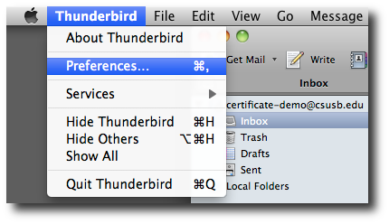 After importing, you'll need to configure your account to use certificates. Find the "Account Settings..." menu.