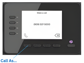 To dial a number using the extension of your main line (department), you must choose the Call As option after dialing the number: