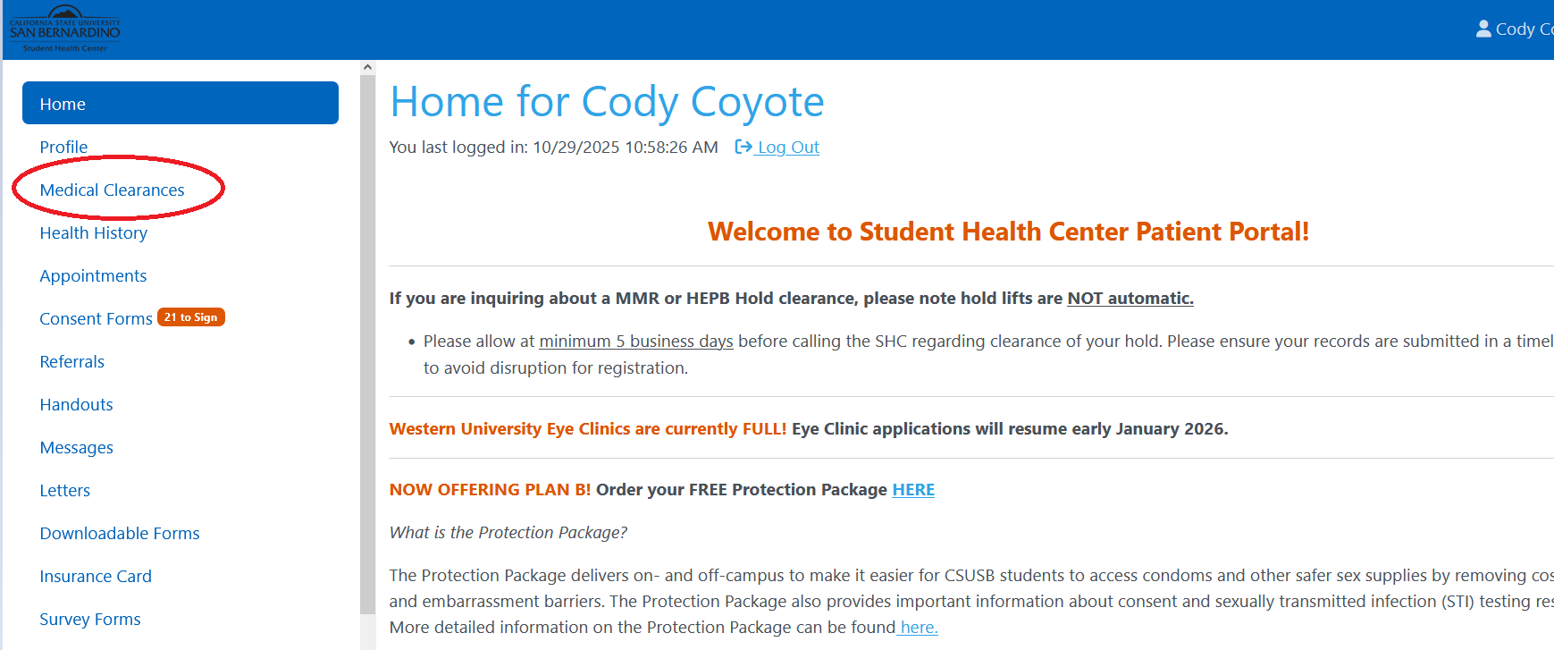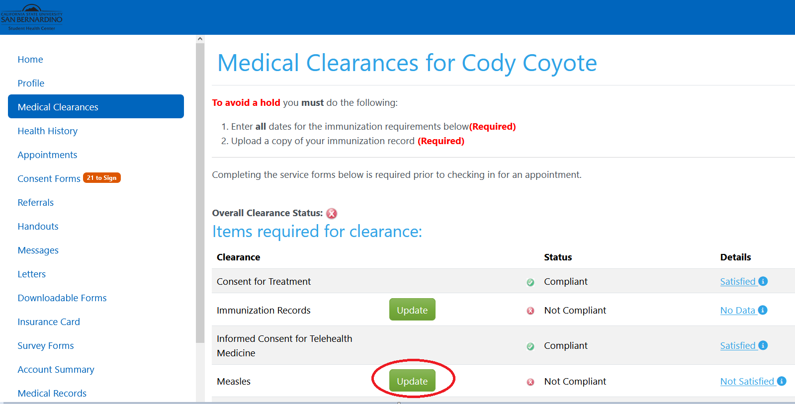 Attn: Student Health Center, CSUSB