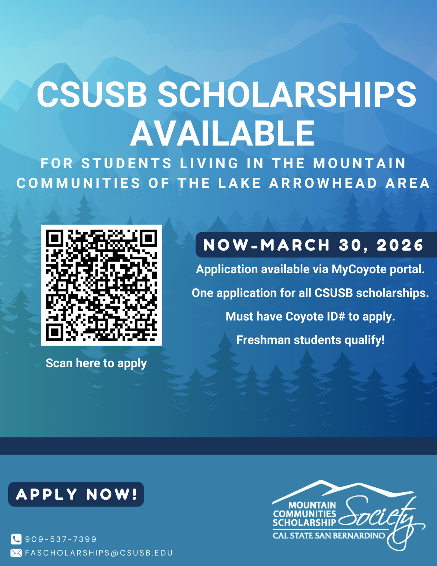 Charitable contributions to the Mountain Communities Scholarships help create an exceptional academic experience for students from the mountain communities of the Lake Arrowhead area, providing scholarship support to fund student tuition, fees, books, housing and educational incidentals.