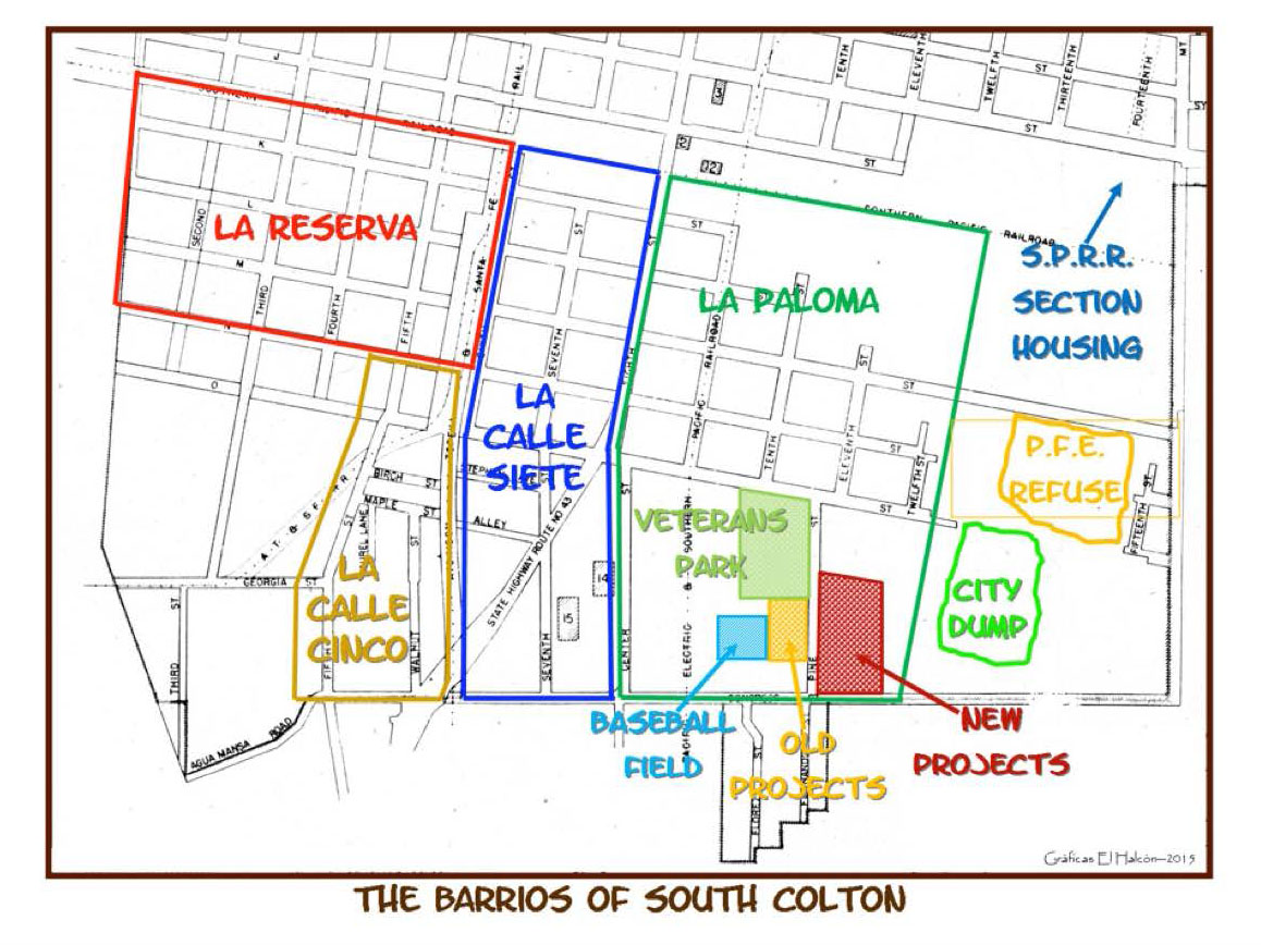 Up until the mid-1950’s South Colton residents were isolated from the larger, more economically and politically powerful part of the city. Their presence in the northern part of Colton was prohibited after 8pm, they had to abide by separate seating in the town’s two theaters, were not allowed to purchase houses in North Colton, and had no voice in the city’s governance.