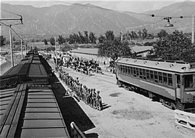 Notices were posted commanding people of Japanese ancestry to report for transport to Civilian Assembly Centers. Most people in California were transported by train. At the train stations people were tagged, and then they boarded the train to be taken to the camps.